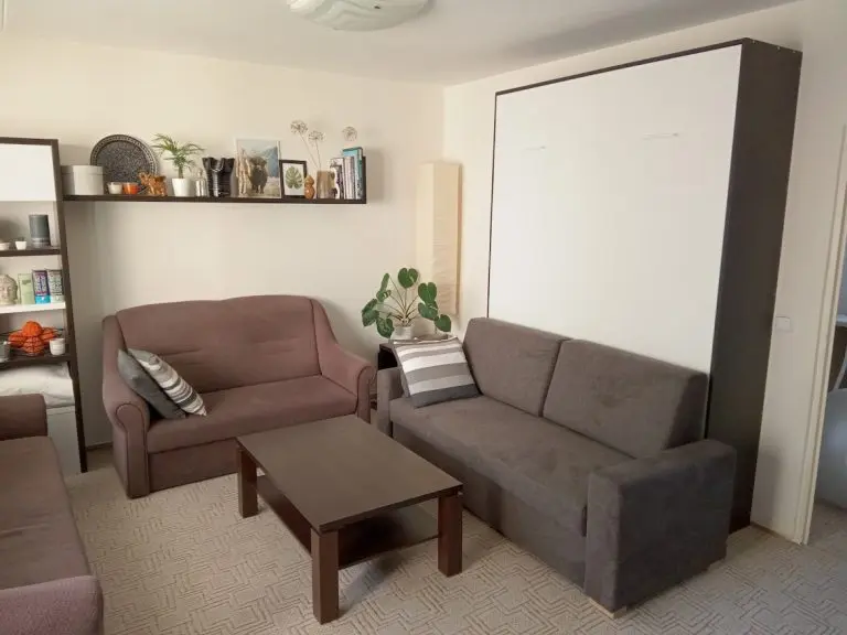 Sedací souprava je rozkládací s úložným prostorem. Před samotným otevřením sklopné postele je nutné sedací soupravu rozložit. Výplň samotného sedáku je pak tvořena z polyuretanové vrstvené pěny (PUR), popřípadě měkčené HR pěny.